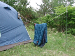 雨が降り出す前にシュラフを干します。 |