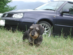 ドールちゃんを追いかけるヴージョ。