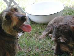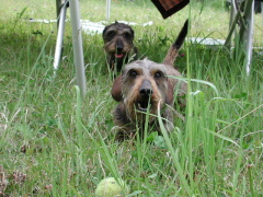 楽しそうに遊んでいます。特にペロ君とはウマが合うらしくヴージョは飛んだり跳ねたりしながら遊びに誘っていました。でもそれがあまりにもしつこいのでさすがの男ペロ君も泣きが入っていたようです^^; |