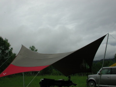 しのちん家のタープの紐に足を引っかけて 靴まで