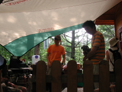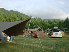 真中に設営した大きなタープの下に
