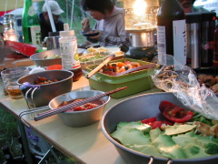 みんなで持ち寄って食べる夕食。