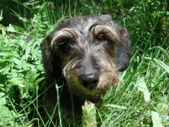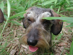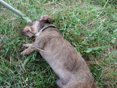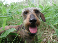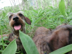 暑いと動かないので バッチリカメラ目線のミュスカ。 |