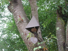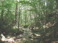 夕方になり雨も上がって 暖かな西日が射しこんだ時すぐ目の前の林の向こうから大きな虹がかかりました