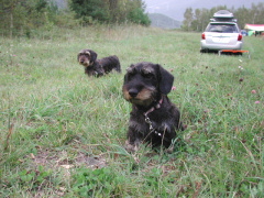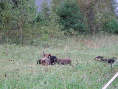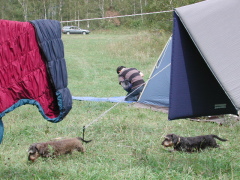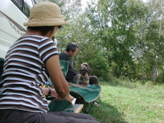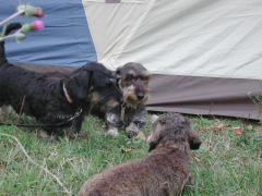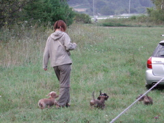 撤収作業中のクリパの周りで 遊んでいるワンs。