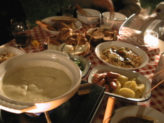 キーマカレーと夕食用のチーズフォンデュが一緒に