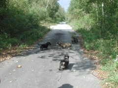 誰かが歩くと ワンs皆で後を追います。