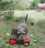 クリークと遊びながらサイトからちょっと離れた所にいたら 後ろからミュスカちんが私を追って来ました。なんて可愛いのかしらん♪ |