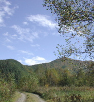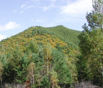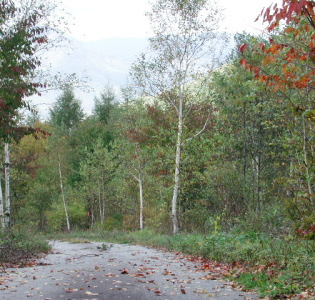 色付き始めた木々を眺めながら 緩くて長い坂道をのんびりと登ります。 |