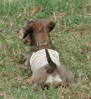 何とエレッチはハナちゃんのお洋服を頂いちゃいました。でも写真を撮ったのに逆光〜あちゃ。