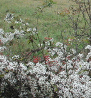 脇道のあちらこちらには枯れた花や実が自然の造形を作り出しています。白に赤のコントラストがとても素敵〜。