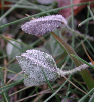 凍った葉っぱが太陽に照らされ キラキラ光ってきれい。