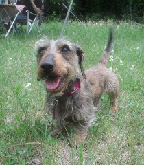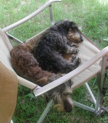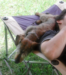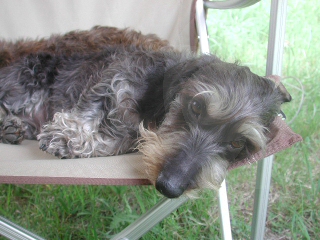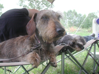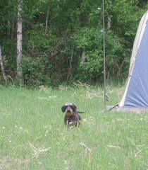 他のワンコと仲良く遊ぶのが苦手なミュスカちん。お友達が来たら一目散に自分たちのテントまで逃げるように猛ダッシュ。