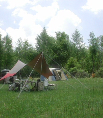 シールドが作る日陰に草原の風が吹くと ひんやりするほど涼しい空間。