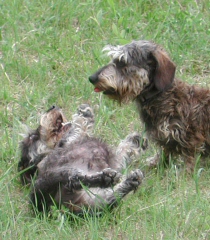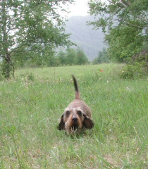 前回よりも草の丈が伸びて ワンsもウサギのように飛び跳ねます。