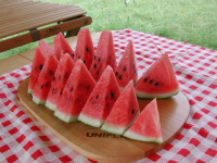 ここは蒸し暑さはないけど やっぱり暑い〜(+_+) ウチのスイカを皆で食べました〜♪