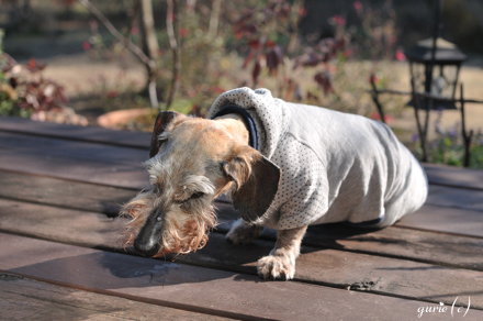 枯葉を追いかけながら、食べながら...お庭をぐるぐる周ります。